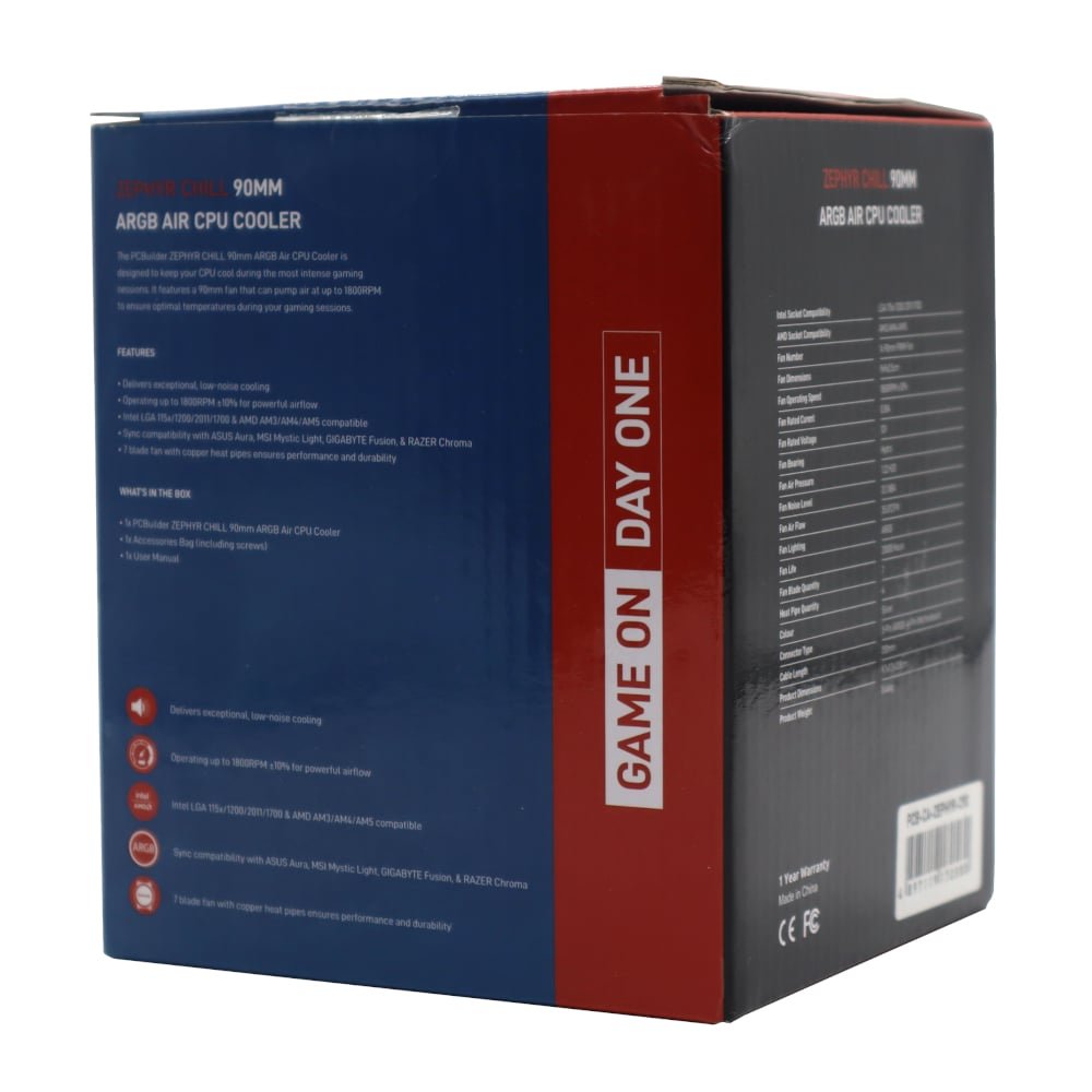 - PCBuilder ZEPHYR CHILL 90mm ARGB Air Cooler x1